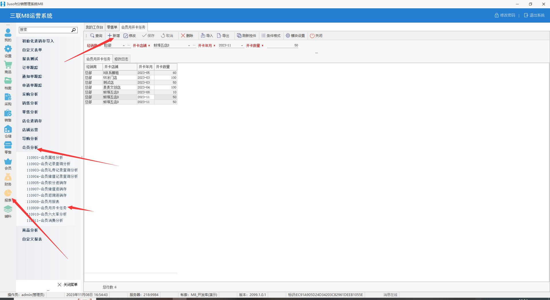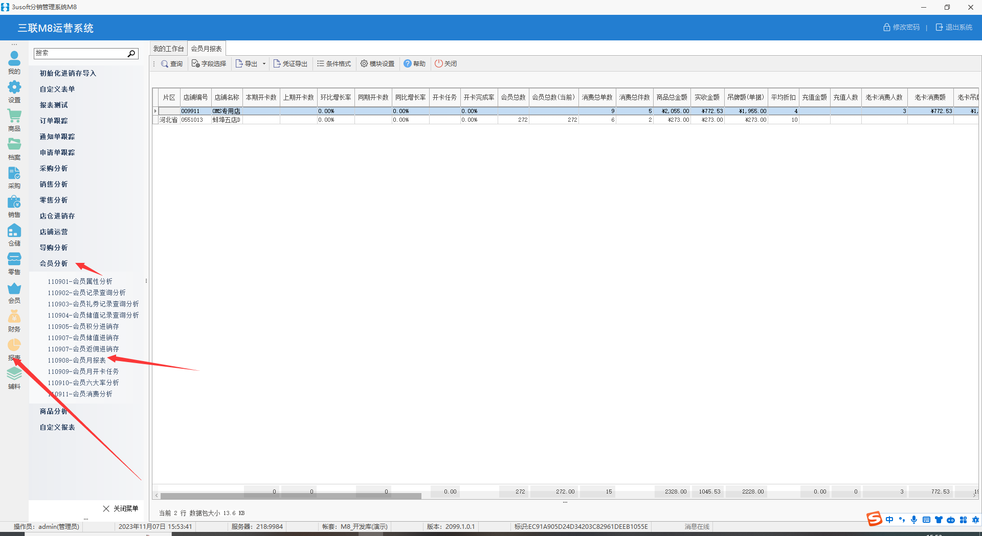 路径:报表>会员分析_会员月报表